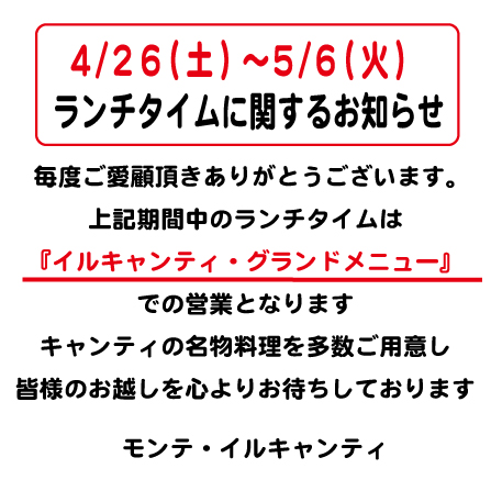 【9(火)と10(水)のランチタイムはグランドメニューでの営業となります】